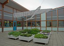 permanente overkapping van de tuintjes. De bakken worden beplant met
