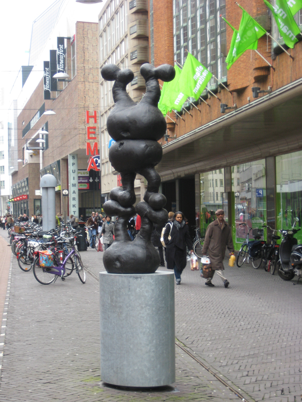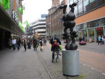 It looks like they come from under the ground. Short and heavy, small and vulnerable. That is what the sculptures of Christien Rijnsdorp (1951) look like. Sometimes they are equipped with a trunk or a suction cup. Very often they don't have arms or a head. Even though we do not know these bulb-shaped primitive forms, we immediately recognize them as living creatures. Rijnsdorp's sculptures are born from her wonder about life or about a particular situation. Balance is an important theme in her work. This is also evident from this funny, shaky little tower of three figurines on top of each other.