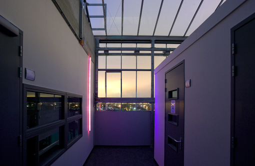 door blacklight. Op vier plekken bij de grote raampartijen van het