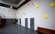 In de centrale hal maakte Regine Schumann een wandinstallatie van