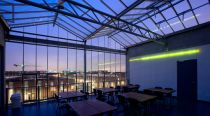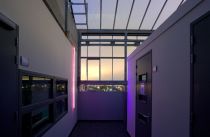 schoolgebouw is een horizontale of verticale ledlijn geïnstalleerd, in