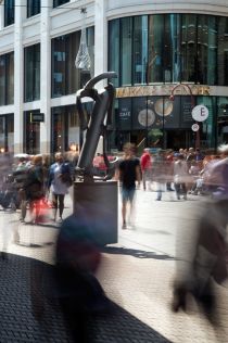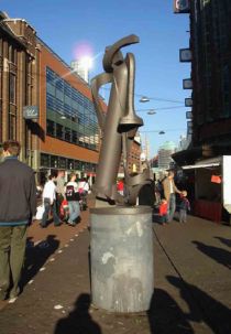Originally this abstract sculpture was a cylinder. A neat cylinder made of thick steel. And then the sculptor Ernst Hazenbroek (1954) worked it with a ‘knife'. He cut the form in half diagonally and expanded it, against all the rules of gravity and the materials. Thus he created a vertical still life. The resistance of the thick steel is plain to see. Even though it fights and squirms on all sides, the artist has succeeded in getting the material under control.