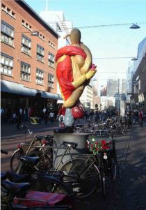They look like clowns, these colourful figures that are standing on their pedestal in a semi upside down position, entangled and intertwined. Their stance looks very uncomfortable. Together they are one, or are they fighting? This way Gijs Assmann (1966) depicts our human shortcomings. For inspiration he looked closely at the monstrous gargoyles from the Middle Ages, contemporary comic books and pornography. In a seductive and grotesque way the sculpture shows how we are in pursuit of happiness, but never seem to achieve it.