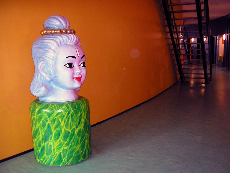 cultuur! Zo hangt op de bovenste etage een beschilderd bronzen beeld