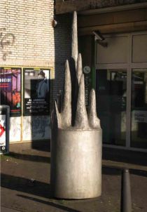 If you glance at it in passing, it looks as if there is an unreal and unspoilt mountain landscape in the city center of The Hague. A moment later the high mountain peaks look like the teeth of a dinosaur. This is not so strange, as the sculptor Adam Colton (1957) turns out to be fascinated by everything in nature. Bones, sculls, mountains and also his own arms and feet. Colton doesn't give us an exact representation of nature. While sketching he changes the shape of his subject.