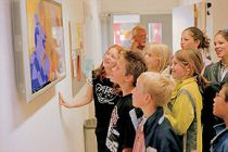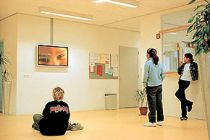 Martin Riebeek installed a small film studio in the central hall of the school. The children can enter the studio, which looks like a portable photo cabin, where their movements are recorded by a film camera. Simultaneously the images are shown on a large lcd screen on the other side of the hall. Especially for his film studio Martin Riebeek has created hundreds of cartoon-like sets and texts which are blended in with the filmed images of the children. The children do not know beforehand which sets and texts will be used for their ‘movie'.
