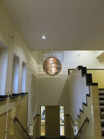 Bas de Boer heeft voor OBS de Vlierboom twee bijzondere lampen gemaakt. Hij maakte foto's van het monumentale glas-in-lood raam en een groepsfoto van de docenten in vogelperspectief. De foto's zijn op grote ronde houten schijven geplakt, wat van onderen een prisma-achtige ervaring oplevert. Door de vele trappen, nissen en ramen in het schoolgebouw, zijn de lampen van veel verschillende kanten te zien en levert het steeds een ander beeld op.