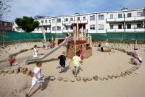 Kunstenaar en hovenier Bas Witlox maakte het ontwerp voor de buitenruimte bij de nieuwbouw van basisscholen De Meerpaal en De Tweemaster. De buitenruimte is in meerdere opzichten uniek: ongewoon groot (2100m2) en op een zeer bijzondere locatie: het duingebied aan de Haagse kust. Witlox heeft de wensen van beide scholen verwerkt in verschillende ‘tuinen' die worden verbonden door het centrale schoolplein; een vormgeving waarbij de duinen en de zee de leidraad vormen. De ‘duintuin' is een multifunctionele ontmoetingsplek waar kinderen fijn kunnen spelen maar ook kunnen leren, waar ouders en buurtgenoten kunnen genieten van de natuur en met elkaar in contact komen.