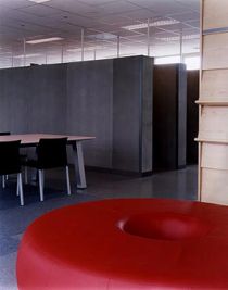 When highschool De Populier built an extra floor on top of its existing building, housing a.o. the school's reading room, the design bureau of Dumoffice from Amsterdam was asked to design a special front desk for the area. In the end Dumoffice came up with the total design of the interior of the reading room, using both existing furniture from the school, secondhand furniture, various accessories and special materials, new tables, reconstructed bookcases, a new front desk, seating units and a wall of photographs.