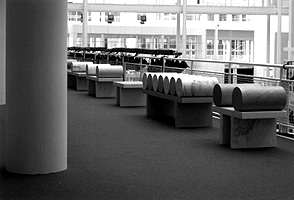 Because of the specific architecture, only a few locations within the new City Hall building (architect Richard Meier) were suitable for installing works of art. Commissions were given to: Marin Kasimir, Fortuyn/O'Brien and Ben van Os.