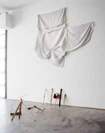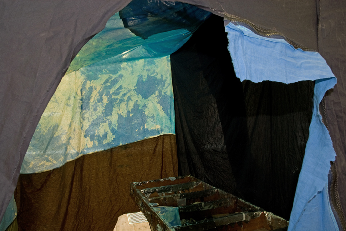 Pulfer gebruikt materialen op een unieke manier. Hij verft de tweedehands stoffen en maakt er tenten, vormen, wandbekleding van. Veel van de stoffen waarmee hij werkt werden voorheen gebruikt in zijn eigen huis of dat van iemand anders. De tenten zijn een manier voor hem om een eigen ruimte te creëren in de white cube van een galerie of museum. Tijdens zijn presentatie op de opening van de tentoonstelling vertelde hij dat het gebruik van tweedehands materialen voor hem interessanter is omdat die materialen een geschiedenis hebben. En vaak kent hij die geschiedenis ook en weet waar ze vandaag komen.