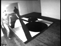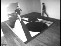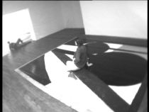 Painting Rooms also consists of a black and white video on a monitor notating the actions by the two artists with these materials.