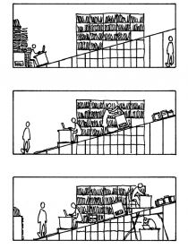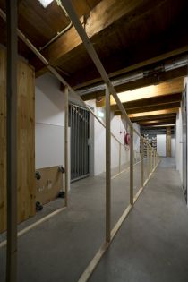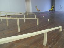 All of the above is also the case for the project The Great Cut which Tirtiaux developed for Expanded Performance. This project does not only deal with the exhibition space of Stroom, but with the whole institution and the people working there. The Great Cut is a reaction to the Dutch government cuts in culture, a very present topic in Holland at the moment. The work spatially visualizes the political decisions that have been taken in The Hague concerning culture budgets, through a physical structure that obstructs progressively 20% of Stroom's space.