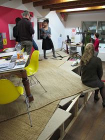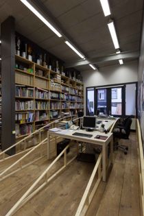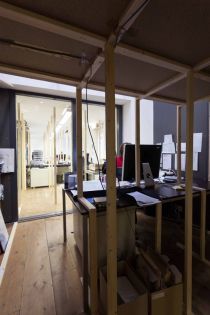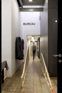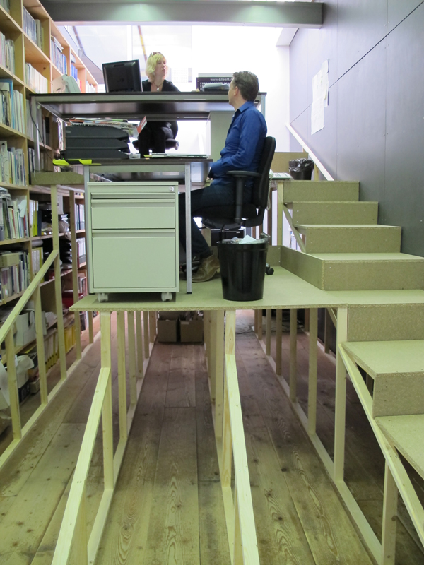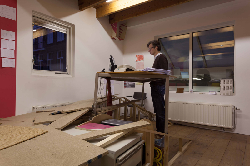 The structure starts in the heart of the organization - the lunchroom and kitchen where the staff meet, talk and have lunch - and from there on, will progress through Stroom and the exhibition space until mid-December. At each step of its development, The Great Cut‘s shape will be defined in dialog with Stroom's employees, trying to find a consensus between practical, ideological and aesthetical wishes.
