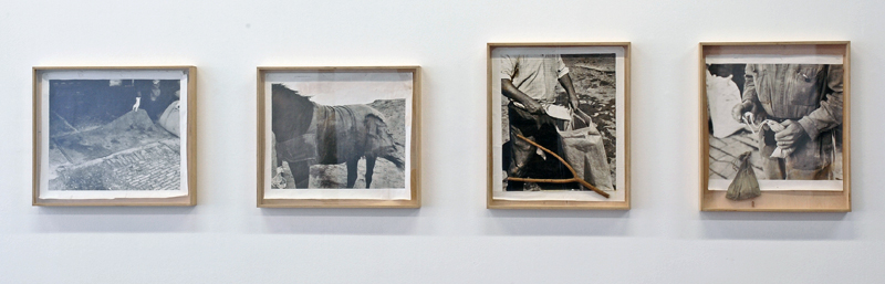 The exhibition shows an installation (from 1966) that consists of several elements. The work comes from the collection of the Audax Textile Museum in Tilburg. There is a tapestry - an assemblage with the title Indian Cress - on which a horse blanket is sewn, a cotton-bound booklet, a photo book and a series of framed black and white photographs that show textile articles during use. Wear and tear, stains tell the story of how these objects have been used. Central to this installation are the repairs and changes that people have conducted themselves.