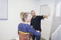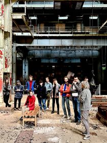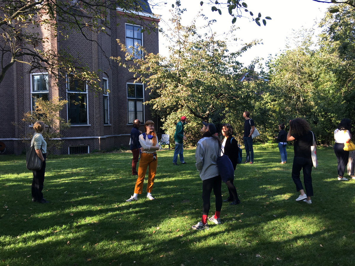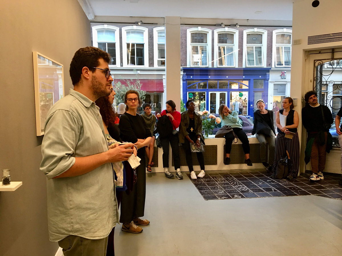 Invest Week curatoren en kunstenaars bezoeken de tentoonstelling 'Facade suspended' van Pieter Paul Pothoven bij Dürst Britt & Mayhew, 2018