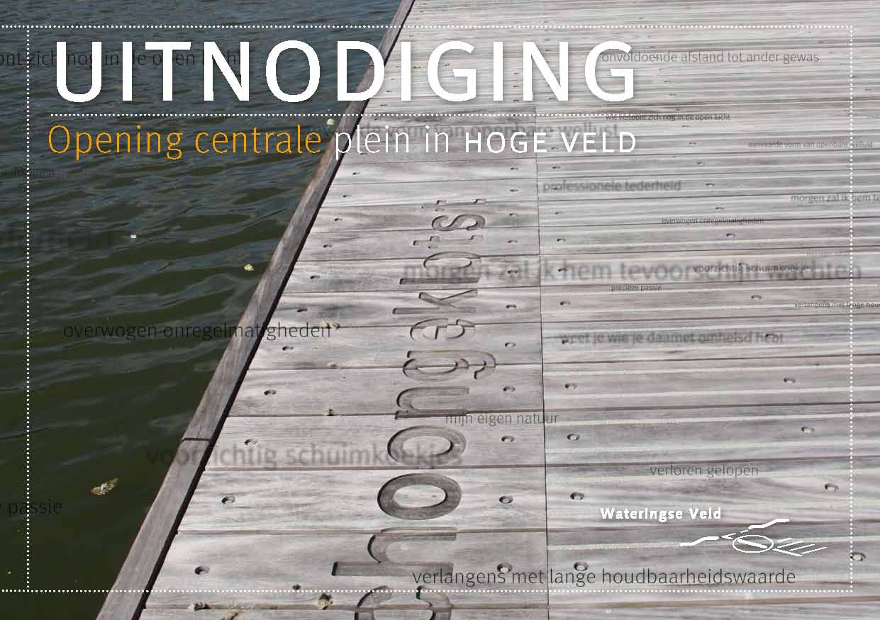 Op 29 september 2010 is op feestelijke wijze het centrale plein in de buurt Hoge Veld in Wateringse Veld in gebruik genomen. De openingshandeling werd verricht door wethouder Marjolein de Jong van de gemeente Den Haag.Hoge Veld is misschien wel één van de meest bijzondere plekken in Wateringse Veld. Tussen de twee weghelften van de Laan van Wateringse Veld is een 500 meter lange singel aangelegd met een stoere kademuur en flaneervlonder. Ook de kunstprojecten van Marjan Schoenmakers en Q.S. Serafijn zijn deze middag onthuld.
