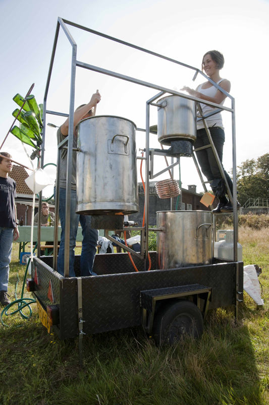 To return to the DAG HAP page: click here.Henriette Waal and her Outdoor Brewery will supply the DAG HAP festival with beer brewed from ditch water and local wild plants and herbs, using an ingenious system of kettles and tubes. Come and taste this remarkable organic, local beer from The Hague.