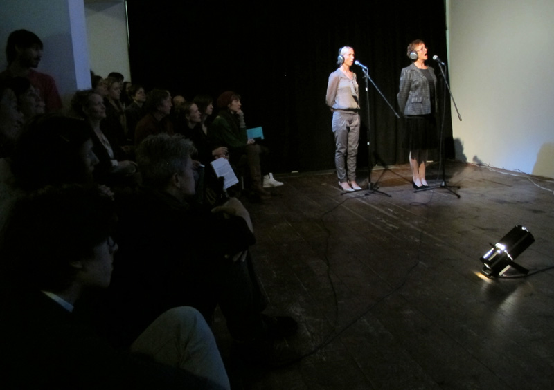 Nicoline van Harskamp, ‘Without Title (an Exercise in European English)’ (2012). Performance at Stroom Den Haag with Dawn Mastin and Amy Potter (2012)