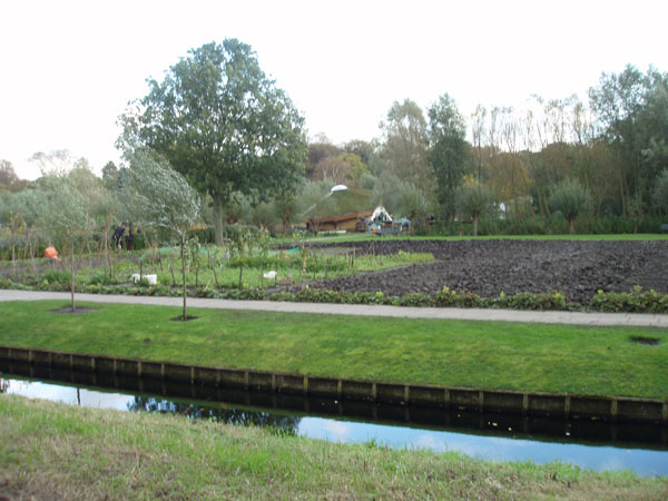 In November 2009 the groundwork and the layout of both gardens started. In May 2010 the construction of the pavilion started. On September 22, 2010 Edible Park was officially opened with a symposium and several festivities around the pavillion.