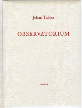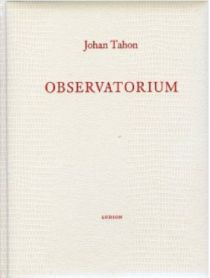 Observatorium: een synthese van het oeuvre van Johan Tahon; als beeldhouwer onderzoekt hij al meer dan vijfentwintig jaar de menselijke figuur. Naast een oeuvrecatalogus van de periode 1982- 2008 biedt het heldere essays van Paul Depondt en Wim van Mulders, fotoreeksen van Stefan Vanfleteren en Mirjam Devriendt en een reeks gedichten van Peter Verhelst. Elk op hun beurt bezochten ze Tahons atelier en proberen ze zijn artistieke praktijk in essentie te grijpen en vast te leggen. Deze caleidoscopische blik op zijn atelier biedt inzicht in zijn werkproces en benadrukt hoe belangrijk die creatieplek, die broedplek van ideeën en waarnemingen, uiteindelijk voor hem is.