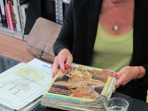 Voor deze bibliotheeksessie nam Suzanne een tas met publicaties mee die haar hebben geïnspireerd. Het enige plakboek van haar grootvader dat ze heeft weten te redden na zijn dood was het eerste boek waar zij lang bij stilstond met een bewogen verhaal over zijn leven en denkwereld.