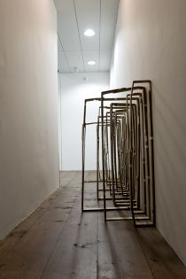 Deze tijdelijke en provisorische frames weerspiegelen de rechthoekige vorm van de smalle ruimtes die ze vullen, maar passen er niet precies in omdat ze de lijnen niet precies volgen. Daardoor ontstaan er, zowel in de verticale als in de horizontale versie van het werk, extra frames en scheidslijnen, die een soort hindernisbanen vormen binnen de bestaande rechthoekige vorm van de gang. Zo worden de bezoekers uitgedaagd zich langs de frames, de muren en de obstakels op hun pad te navigeren.