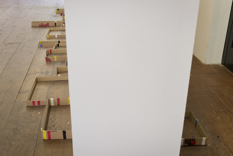 Het tweede project van Vlatka Horvat is een ruimtelijke interventie in twee delen, die zich afspeelt in de trapgangen aan de voor- en achterzijde van de tentoonstellingsruimte van Stroom. Drift (Floor) en Drift (Wall) bestaan uit een serie kwetsbare kartonnen constructies die tegen tegen één muur in de twee gangen zijn geplaatst. Voor deze imperfecte geometrische constructies zijn kartonnen dozen tot repen geknipt en vervolgens weer tot frames aan elkaar zijn geplakt met behulp van gekleurd isolatie tape. Deze frames zijn op een bepaalde manier gesorteerd - horizontaal en op de vloer in de ene trapgang, en rechtop en tegen de muur in de andere.