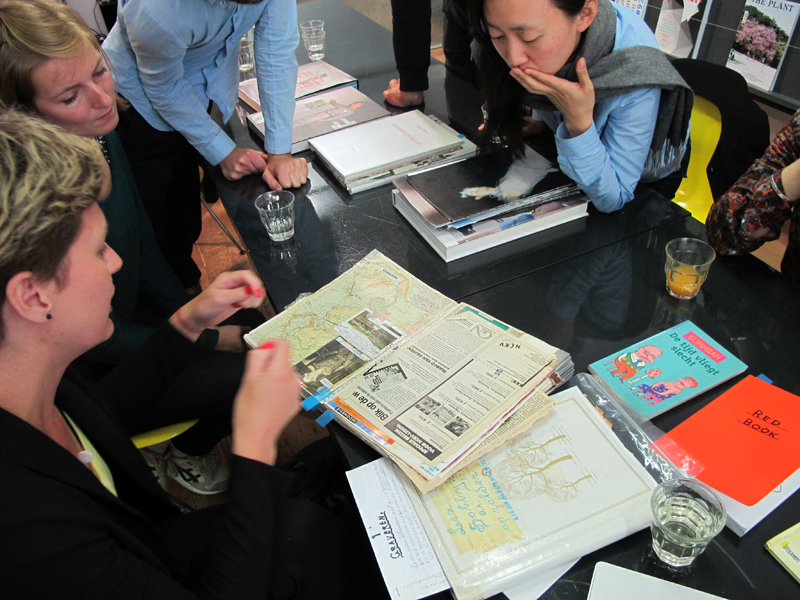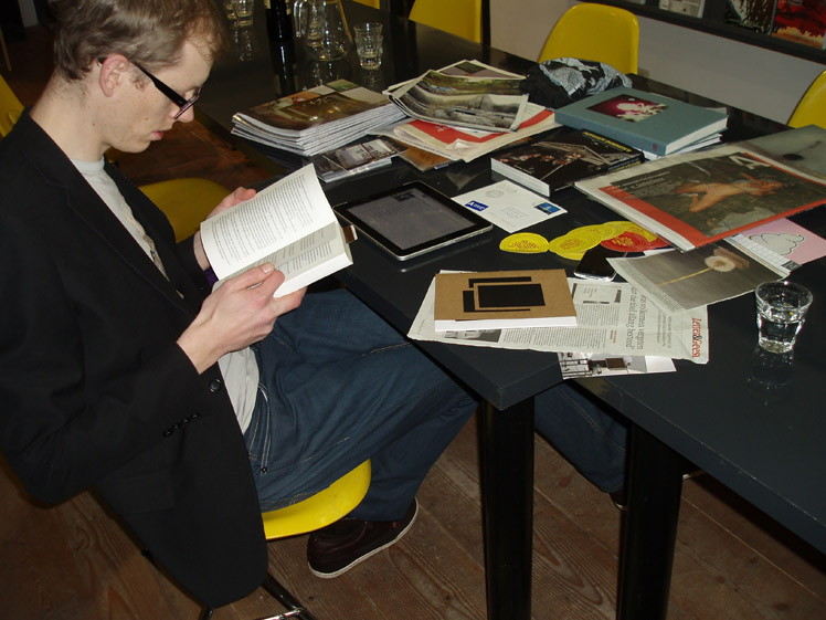 We nodigen iemand uit om te praten over eigen werk, een tas met publicaties mee te nemen die hem of haar inspireren en dit enthousiasme vervolgens te delen met anderen. Een kleine groep mensen wordt uitgenodigd om met de hoofdgast kennis en ideeën uit te wisselen naar aanleiding van de meegenomen boeken en tijdschriften.