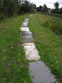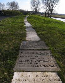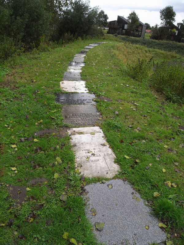 Op de oude geschutwal rondom het negentiendeeeuwse Kunstfort bij Vijfhuizen ligt nu een pad van honderden grafstenen, afkomstig van geruimde graven - grafstenen gaan langer mee dan de dood.