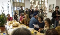De gesprekken zijn heel levendig en bijna iedereen begrijpt de bijzonderheid van deze presentatie in de tussentijd.