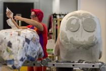 Die combinatie van kunstwerken die nog steeds intact zijn, of speciaal geplaatst zijn, en materiaal in alle staten van wording, en gereedschappen die rondslingeren, zakken cement - een levende werksituatie - die combinatie is goud!