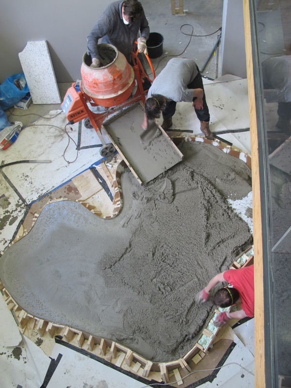 Mike Cooter & crew installeren zijn werk 'The Mouth of Hell'