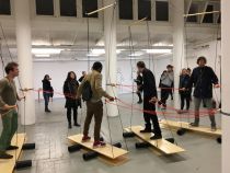 Invest Week curators and artists visiting the exhibition 'Facade suspended' by Pieter Paul Pothoven at Dürst Britt & Mayhew, 2018