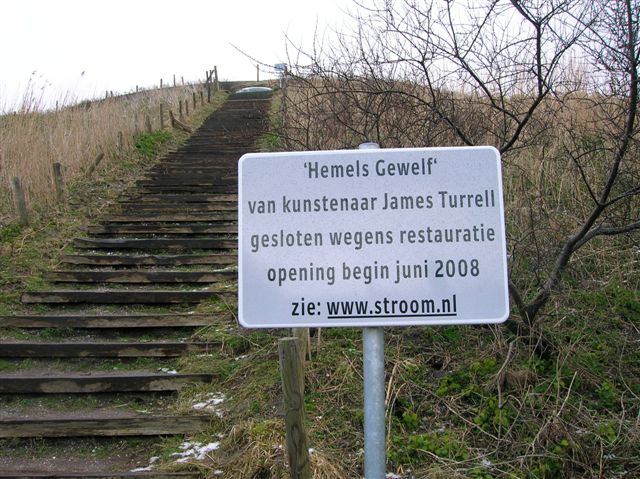 Toen elf jaar geleden het Hemels Gewelf van de Amerikaanse kunstenaar James Turrell werd opgeleverd had niemand gedacht dat er zoveel mensen - van de dagelijkse jogger tot de kunsttoerist uit Japan - deze plek in de duinen van Den Haag zouden opzoeken. Als gevolg daarvan, maar vooral ook door natuurlijke omstandigheden is de streng geometrische vorm uit de kunstmatige duinkom verdwenen. En juist die perfecte komvorm is noodzakelijk voor een optimale beleving van dit internationaal befaamde kunstwerk in Kijkduin.Ook diverse sponsoren waren van mening dat het werk weer in zijn oorspronkelijke staat moest worden teruggebracht. Stroom heeft daarom de nodige middelen bijeengebracht voor een restauratie die enkele maanden duurde (feb-mei 2008). De heropening vond plaats op 1juni. Het Hemels Gewelf maakt deze zomer deel uit van Den Haag Sculptuur; de tentoonstelling die dit jaar onder de titel ‘Freedom' de nadruk legt op het werk van Amerikaanse kunstenaars.
