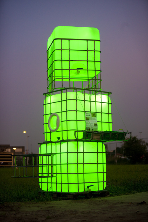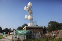 To return to the DAG HAP page: click here.When visiting DAG HAP you will notice that all the objects on the festival grounds have been made of recycled materials. This is the work of the recycle architects of Refunc: Jan Körbes and Denis Oudendijk. Take their artwork 'Hot Air' for example: a landmark made of the discarded blades of a wind turbine. One of the blades will also function as the outdoor dining table of the ConservenNL restaurant at DAG HAP. The festival's information booth will be housed in an old electric cart and the festival's light installation has been made of used water tanks.