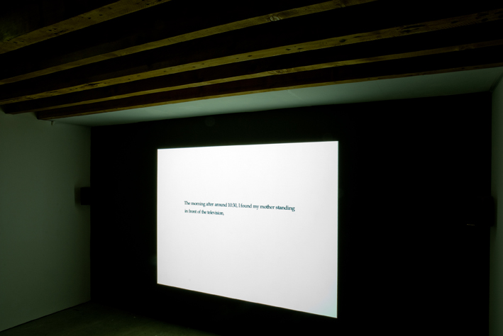 Speak, Memory presents two of her videos. In SHAHRZAD (2009), we see the famous Iranian poet Shahrzad who, unable by her own doing to leave her house, lives in the past and her memories. In A LEAP YEAR THAT STARTED ON A FRIDAY (2010) Rajaei retells her memories of an attack she witnessed as a young child. Her memory of the event is abstracted in text-based images and a few visual images that try to grasp her haunting nightmares after the attack.